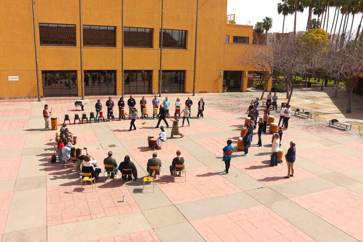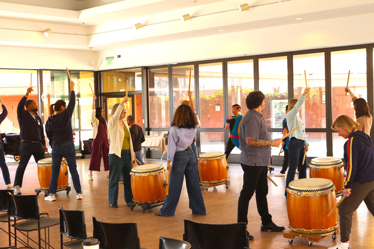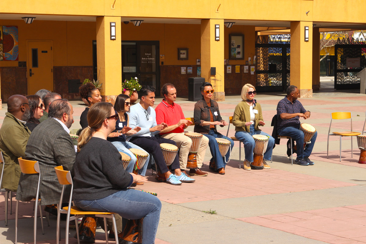 Of course, drumming day is also an opportunity to welcome and orientate the incoming Fellows, who are scheduled to officially begin on April 9. The two cohorts participated in the traditional multicultural drumming exercise led by ALF Senior Fellows Chike Nwoffiah (Class XXI) and Wisa Uemura (Class XXXI).